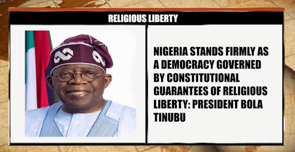He says religious freedom and tolerance have been a core tenet of the collective identity and shall always remain so. Nigeria opposes religious persecution and does not encourage it.