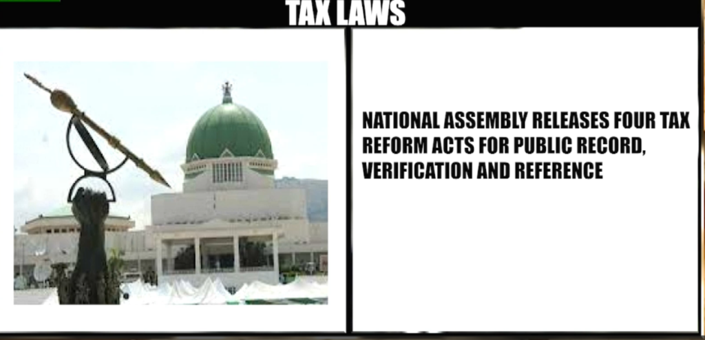 The National Assembly has released the four tax reform acts duly signed into law by President Bola Tinubu for public